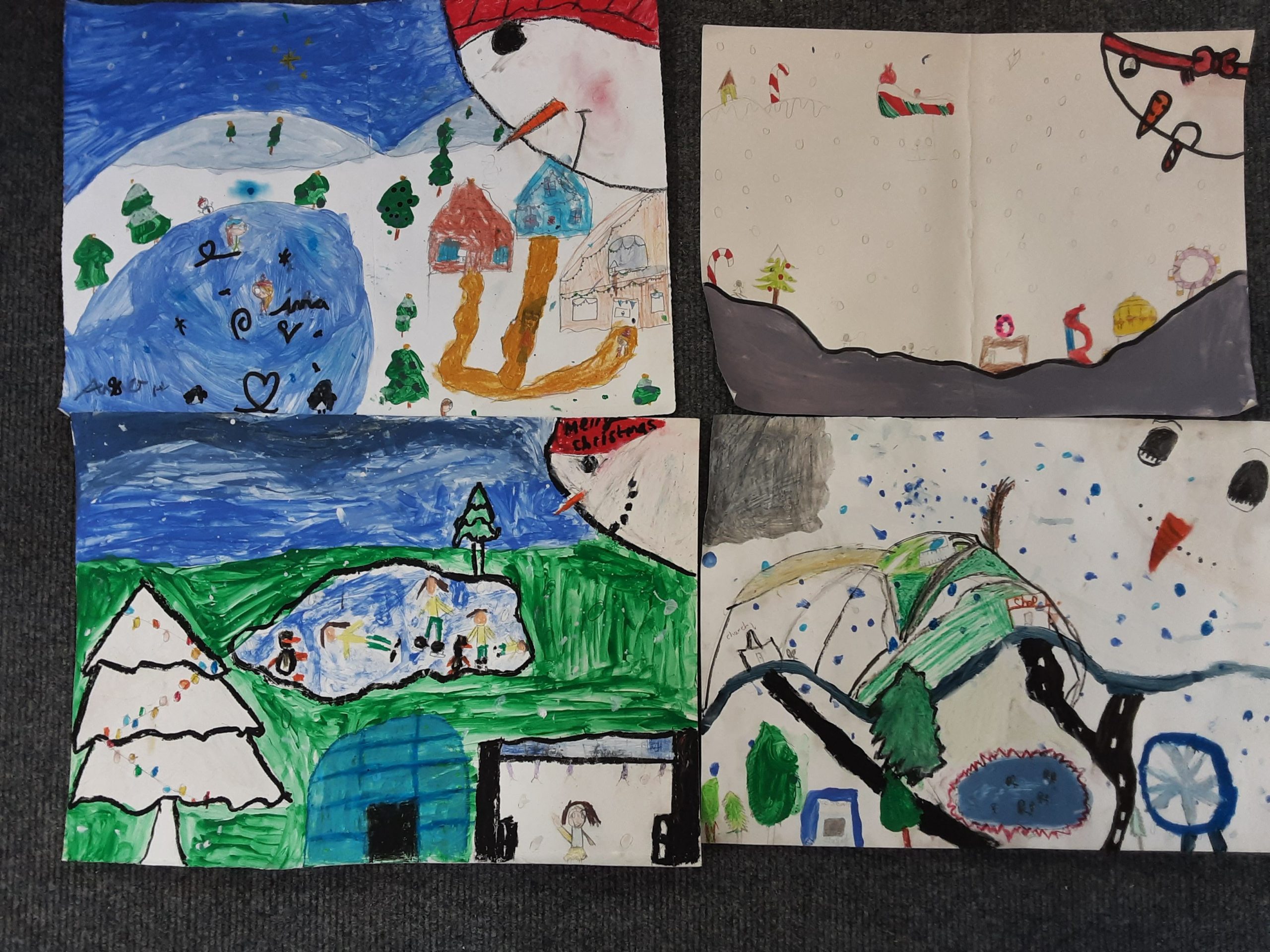 This week Rang a 4 have been busy with Christmas Art. Some of our creations include a ‘Winter Scene’, a ‘Snowman Christmas Tree’ decoration and a ‘Christmas window view’.