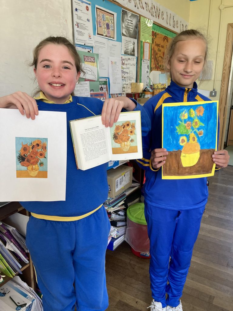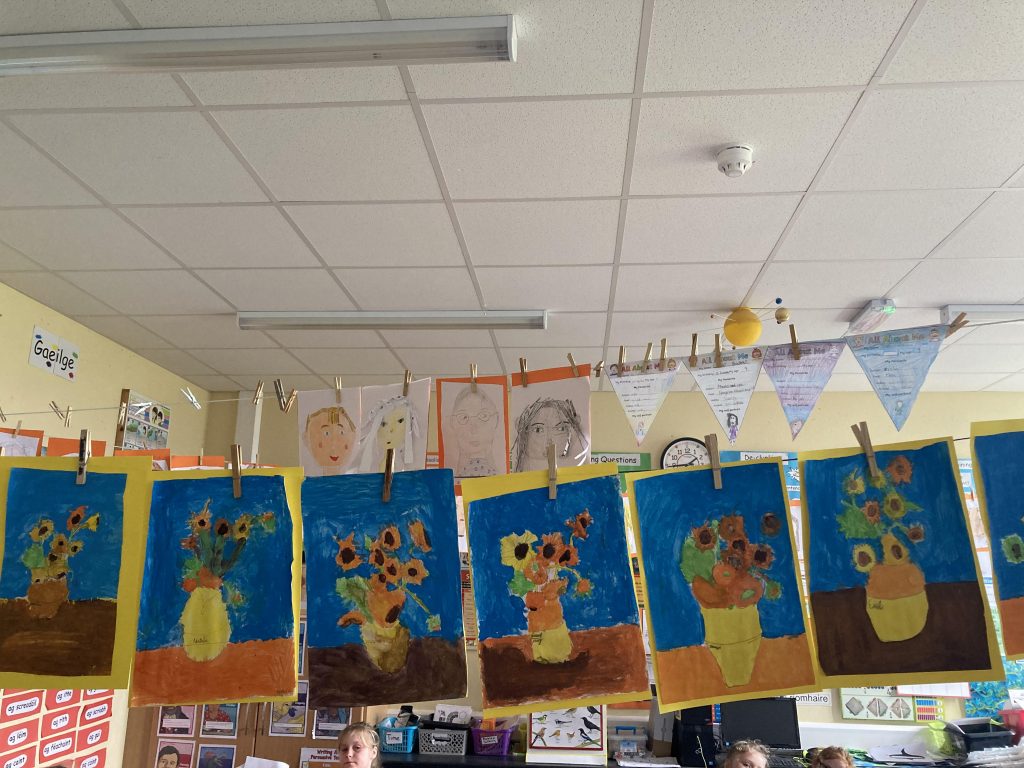 Today 4th class painted ‘The Sunflowers’ by Van Gogh. We used different shades of yellow and orange to enhance our painting. We were really happy with our paintings. We hope you like them!