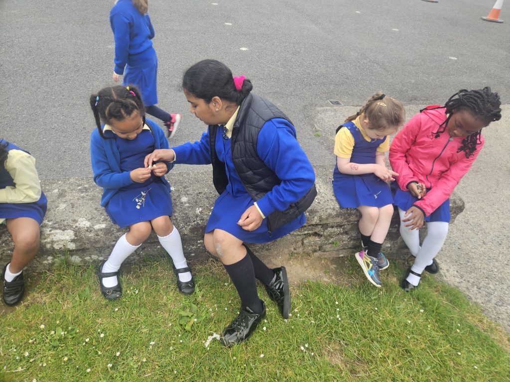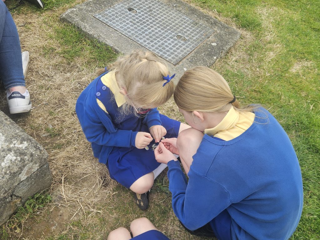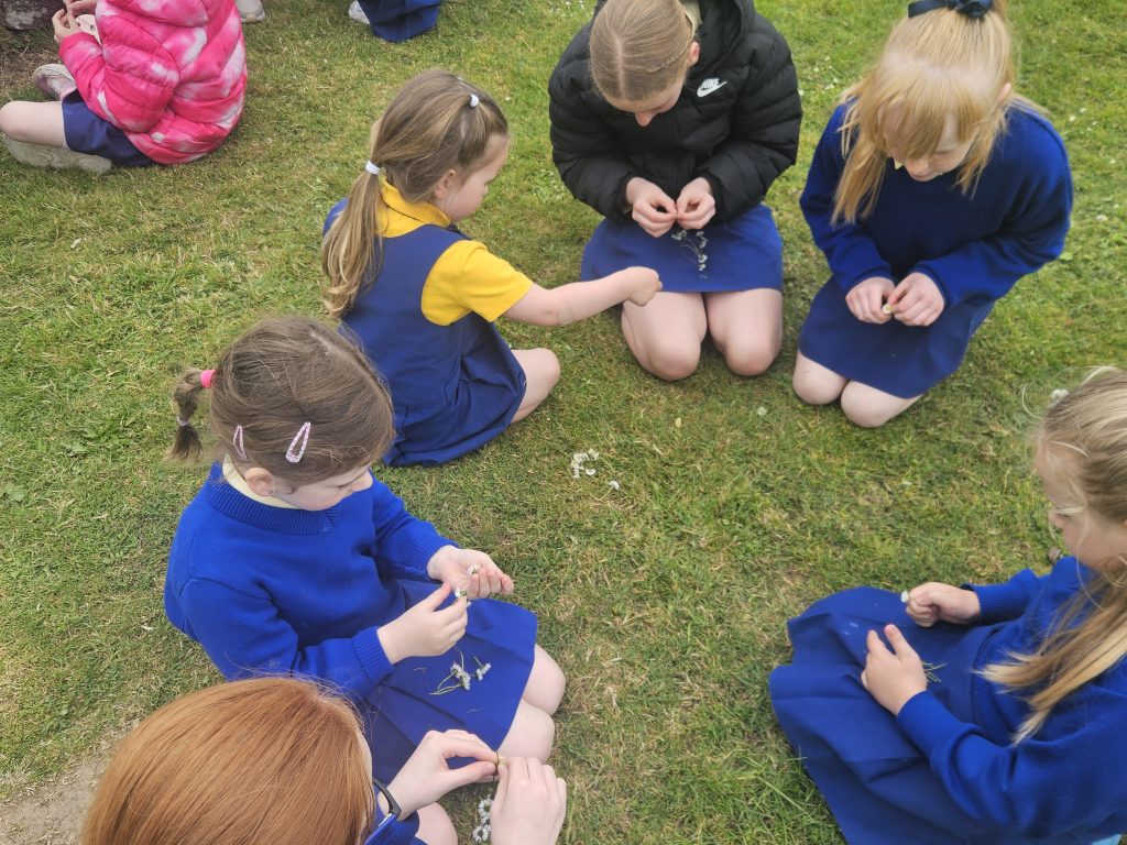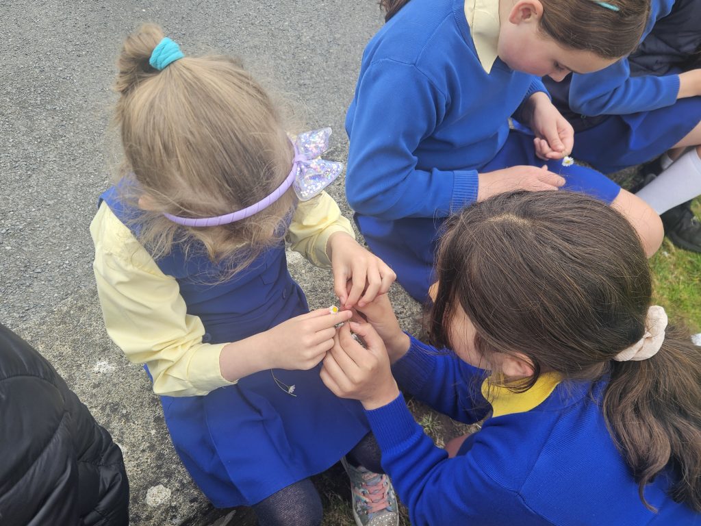 Junior Infants have had a very busy week this week with lots of activities. We had our school tour on Monday, a cake sale on Wednesday, and the 4th class girls even taught us how to make daisy chains!