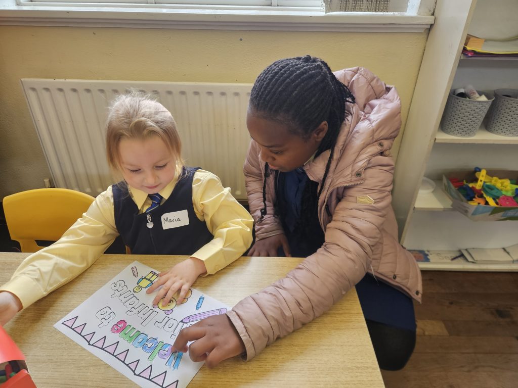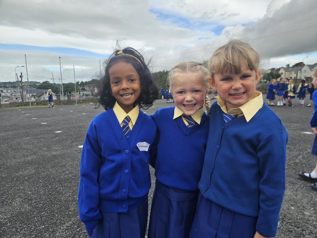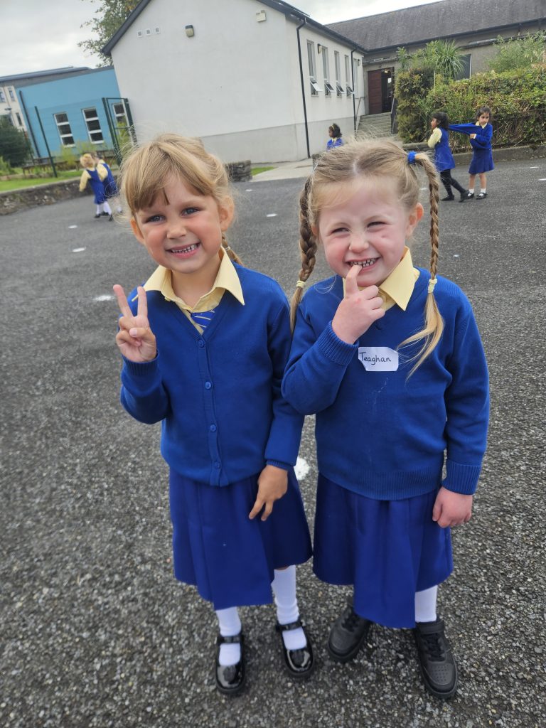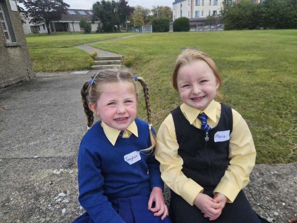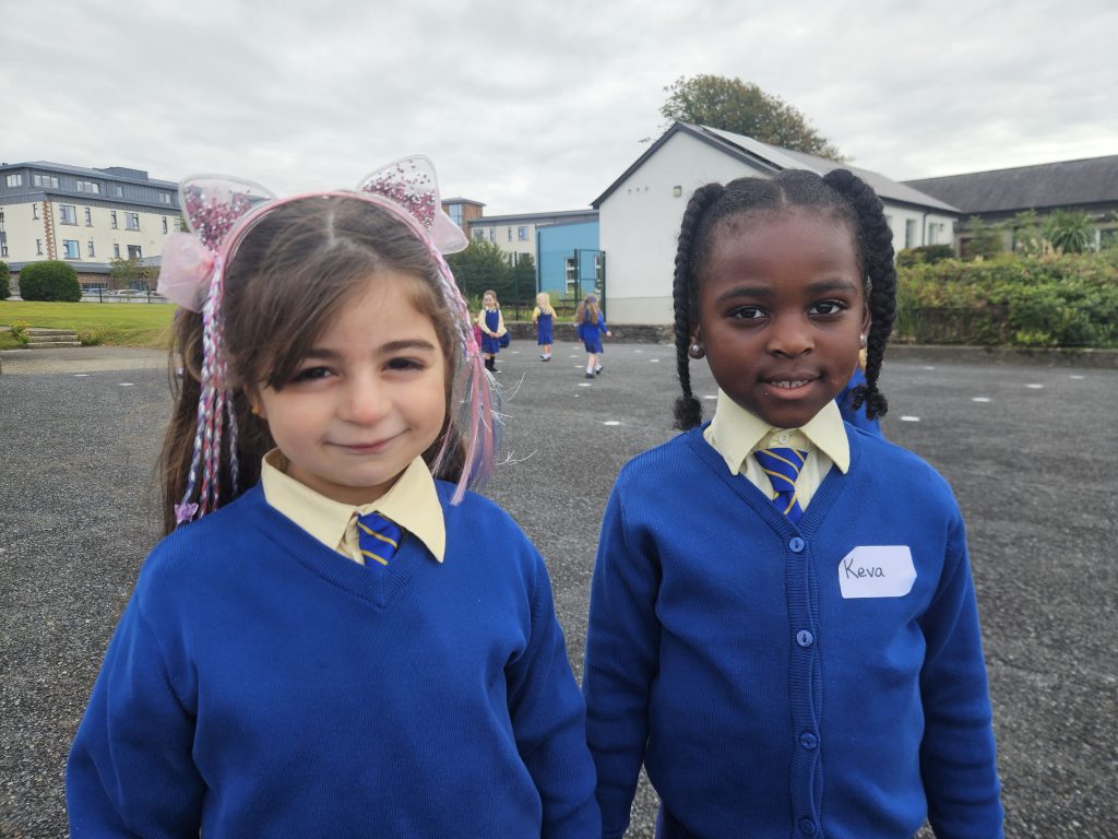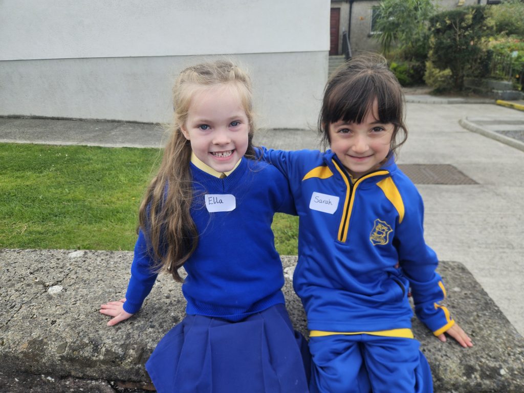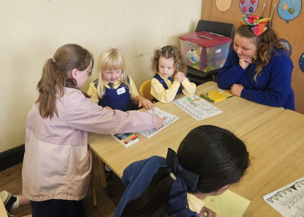 The girls had a great first day today. They played together, did some colouring and painting, went outside after small lunch and then met their 6th class buddies. We read a story before home time and each girl left with a smile on her face. Looking forward to seeing all the girls again tomorrow morning. Miss Hall