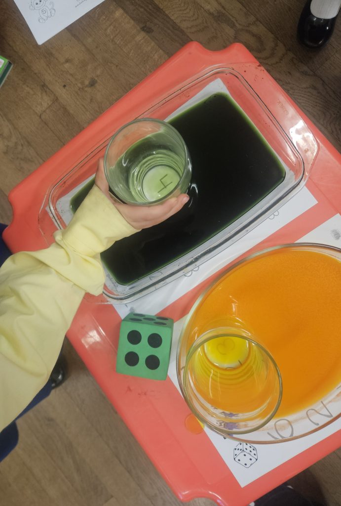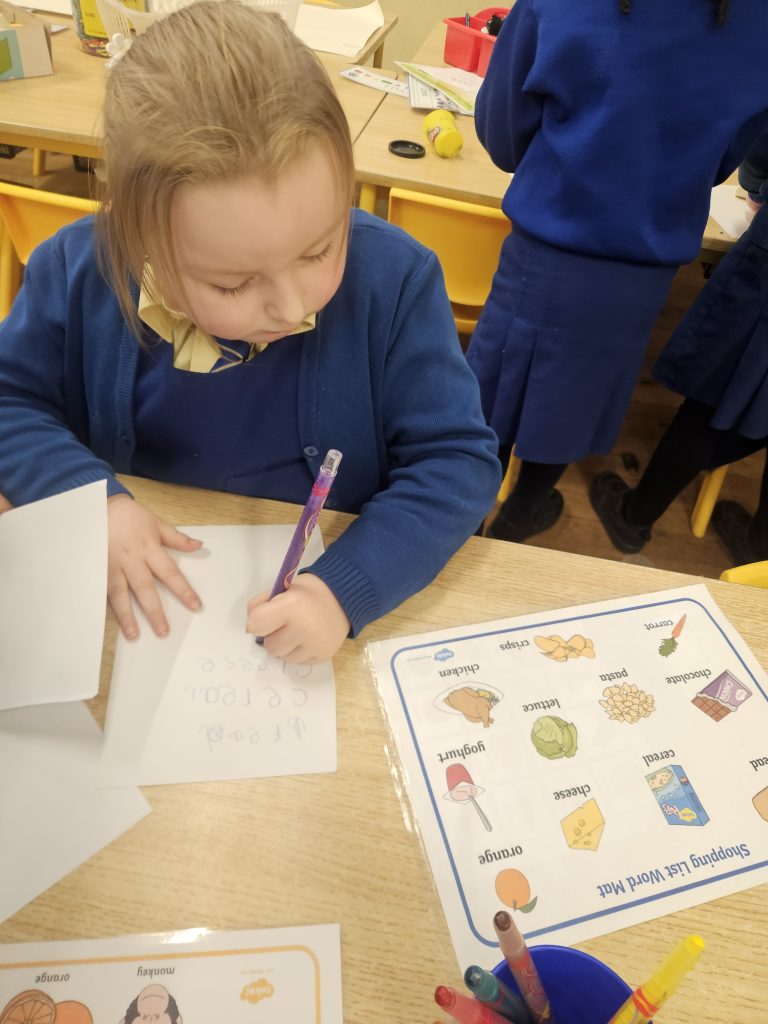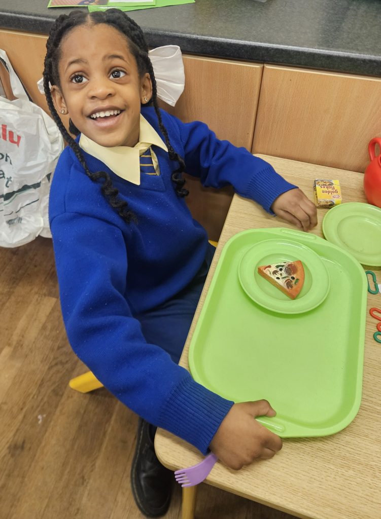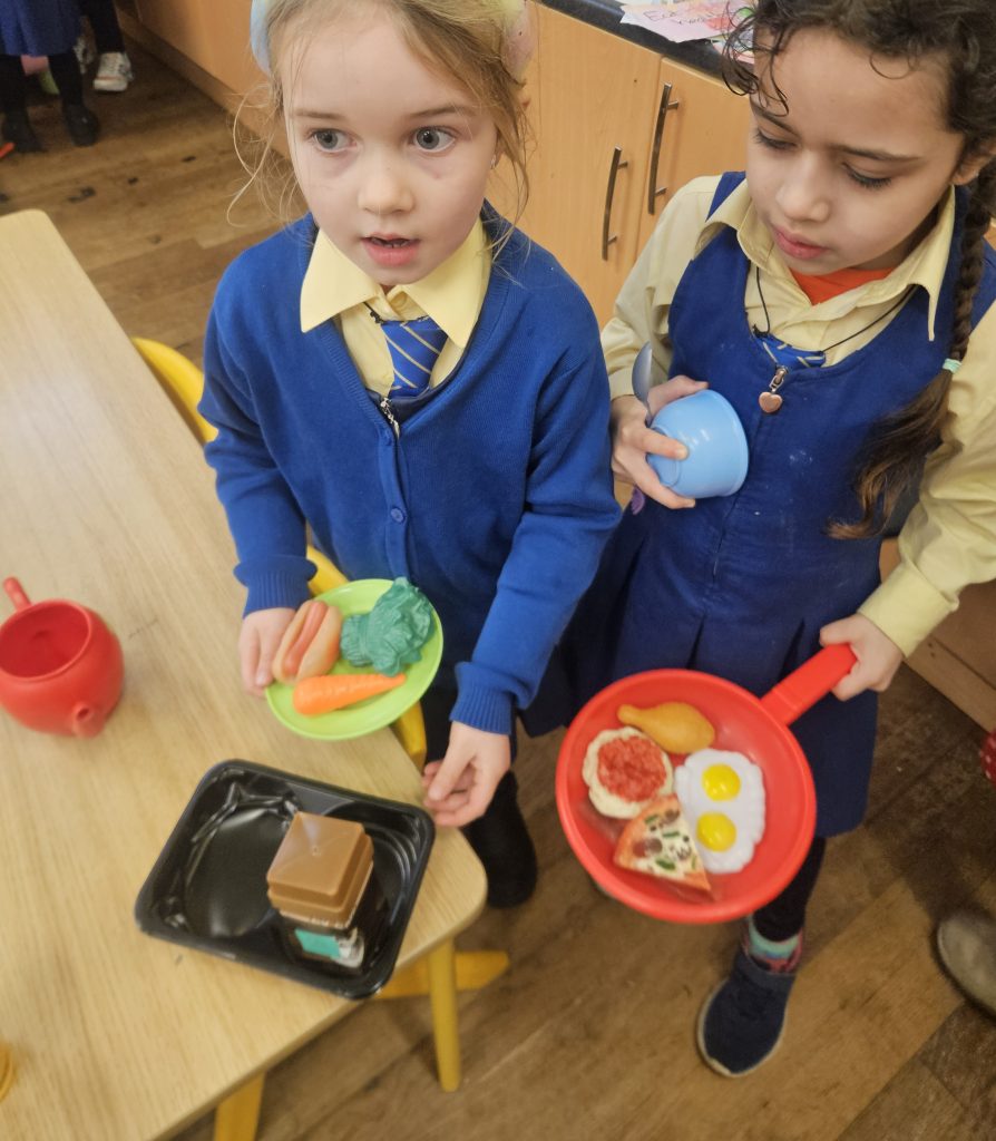 In class we have also been playing in our restaurant and kitchen areas, cooking and serving food to customers.