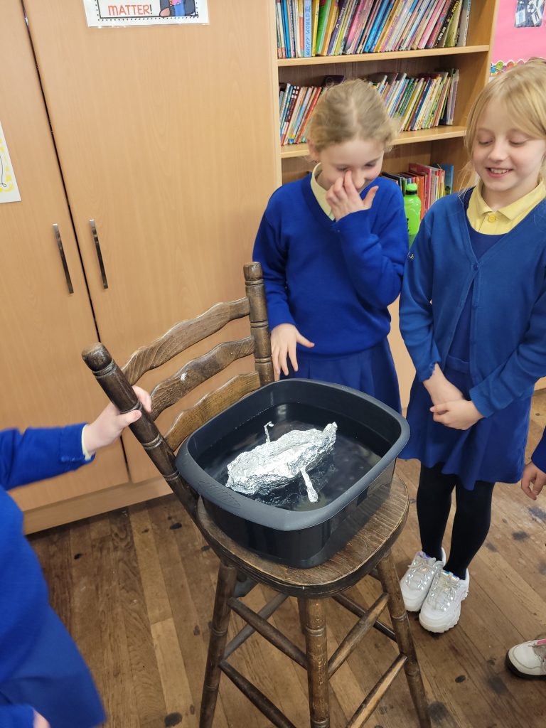In Science we have been learning about how the force of air, water and gravity can make something move. We had some fun seeing and doing pushing and pulling activities. The girls did some experimenting and designed and created very successful boats that floated and could also move by the force of air. We also learned about friction and why the right amount of friction is needed to make something stop or slow. We experimented with toy cars and various surfaces from smooth to rough.