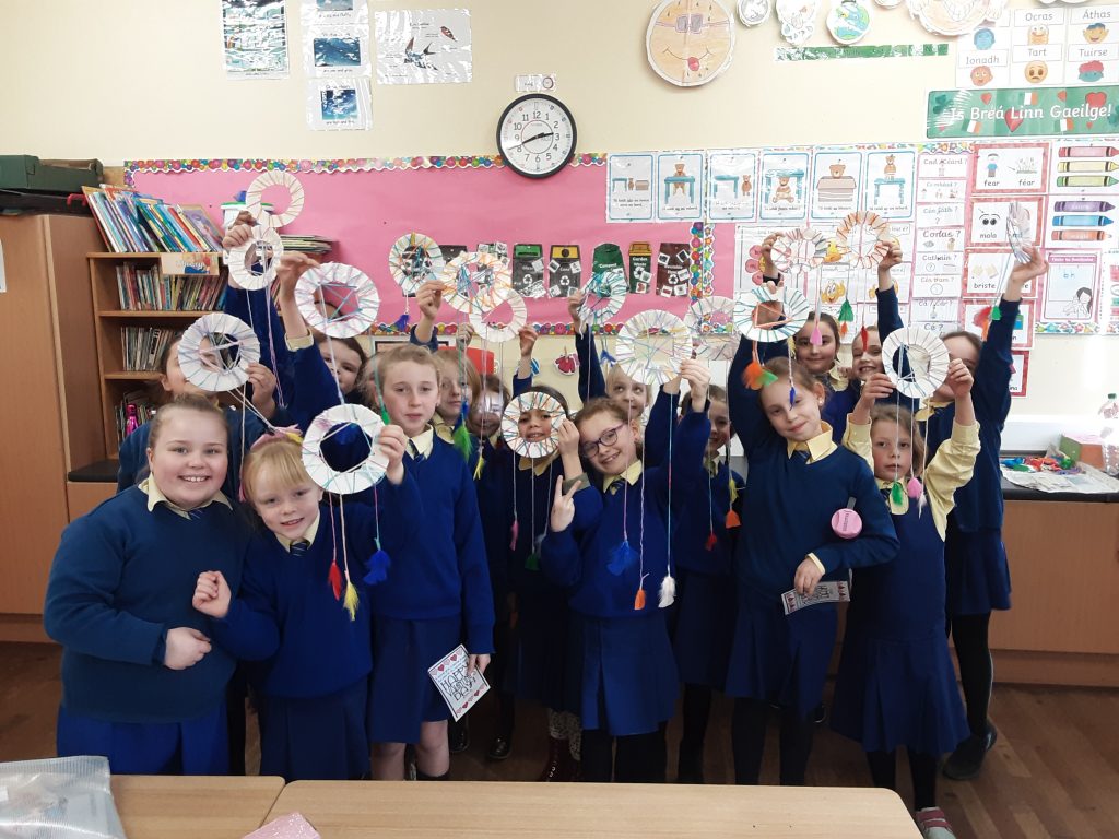 The girls are really impressing me with their Gaeilge. We have been learning about Eadai (clothes) and an Seomra folctha (the bathroom). Thanks to the girls for bringing in cloths and bathroom items, we had really interactive lessons. Ta crios ar an leaba. Ta tuaille ar an urlar. Ta me ag ni mo lamha!