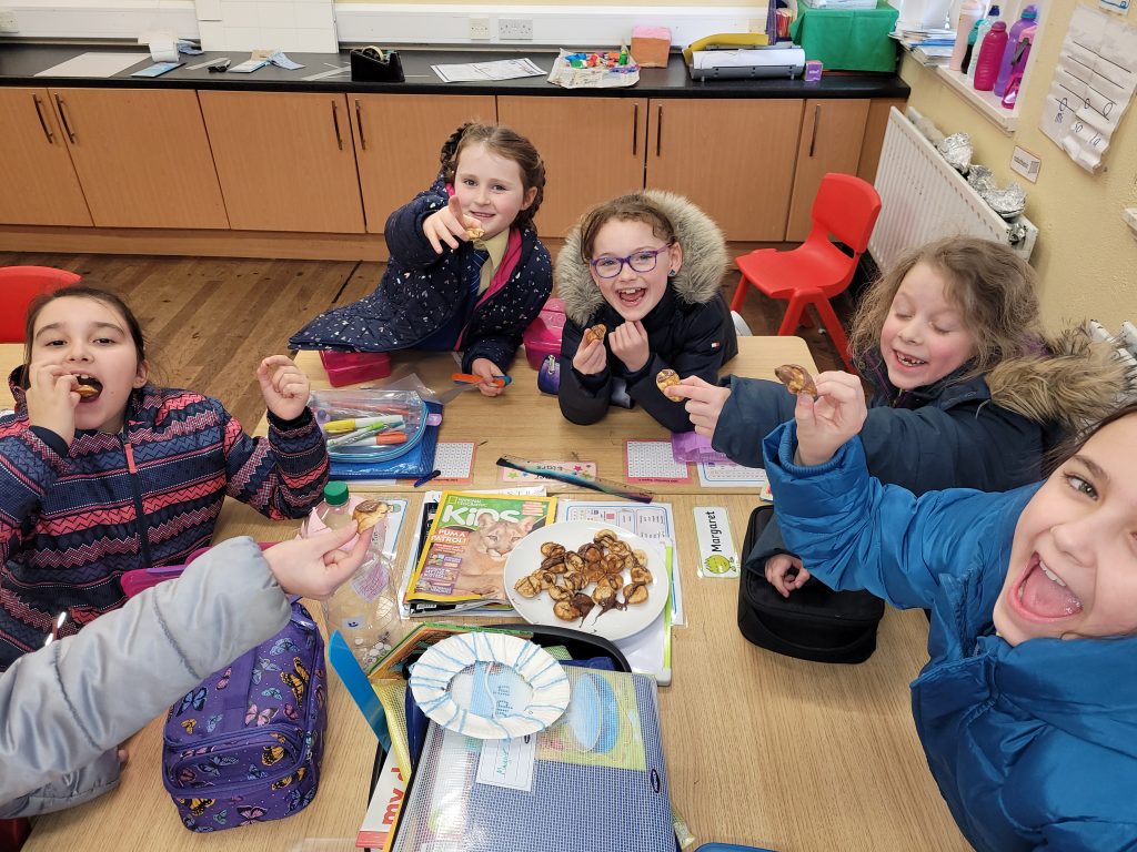 In Maths, the girls have been busy shopkeepers buying and selling and learning how to calculate change. Great group work from 2nd class here. They will be ready to buy and sell anything during Mission week next year.