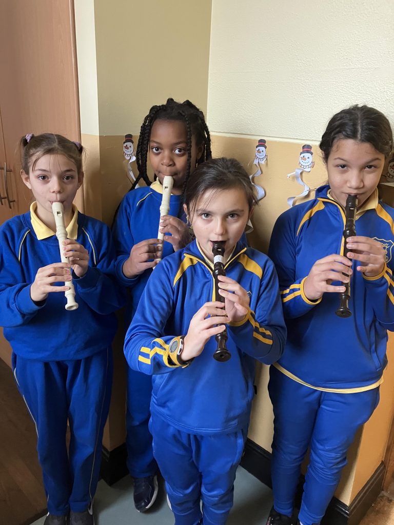 We are learning to play the recorder in third class.